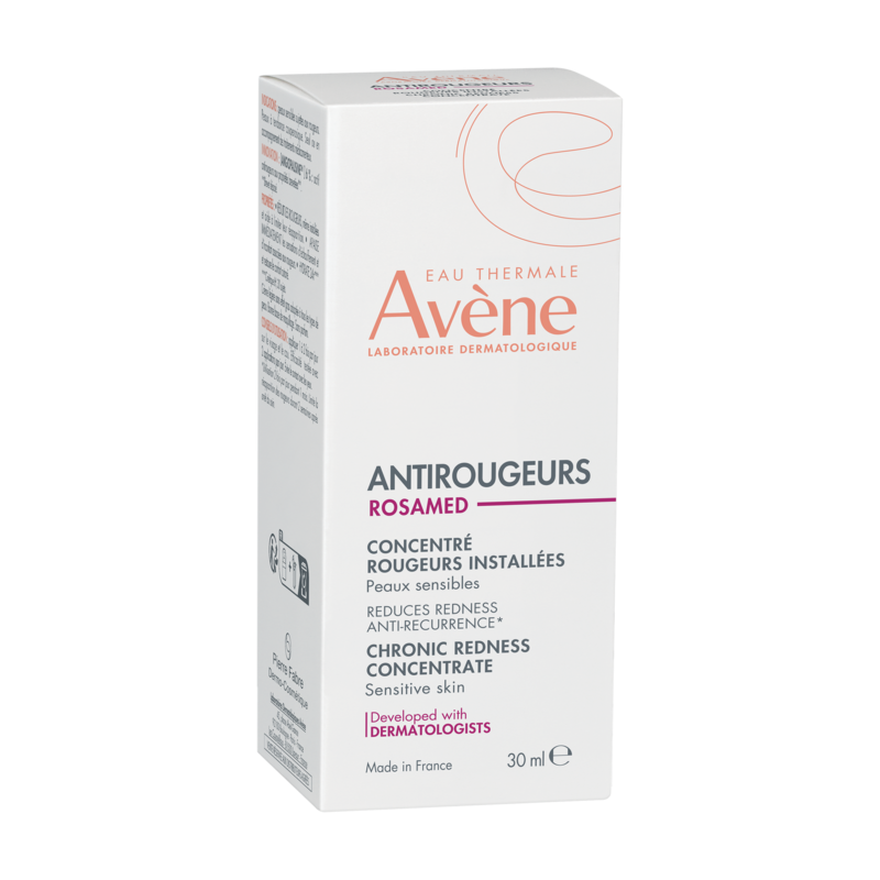Desarrollado en colaboración con dermatólogos, el producto de cuidado de la piel Rosamed Crema concentrada antirojeces reduce el enrojecimiento crónico y su acción contra la recidiva ayuda a limitar su reaparición. Calma inmediatamente las sensaciones de ardor e hidrata durante 24H* para restaurar la comodidad cutánea.